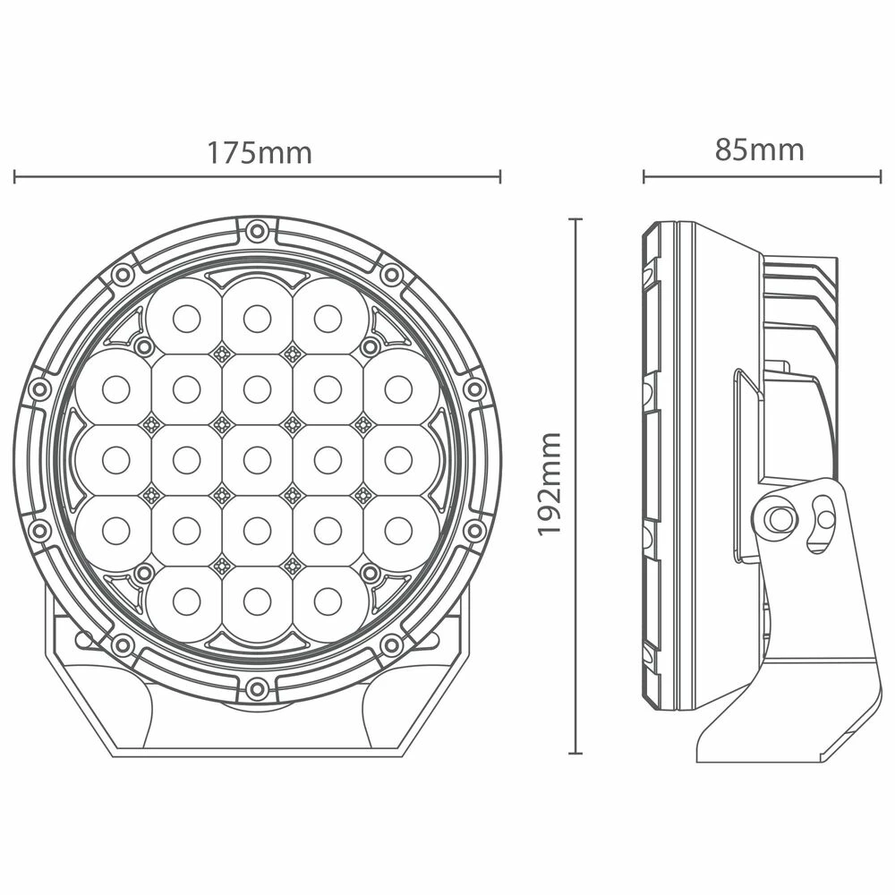 Light up the road ahead with the 175mm Enduralight LED Driving Lights. It features 21 x 4W high intensity LEDs to produce a light output of 12,000 lumens per pair and the 6,000K colour temperature produces a cool white light. These driving lights project a longer, more focused spot beam maximising visibility at a distance and are enclosed in a fully sealed dust protected and water resistant IP68 alloy housing. This means they are able to withstand even the most treacherous off road and extreme driving conditions. This light come complete with wiring harness for an easy to install process straight out of the box. The wiring harness is suitable for both positively and negatively switched vehicles.